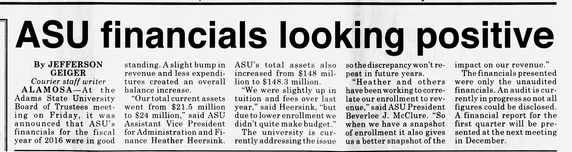 The willful lying continues. ASU recently issued a statement declaring that it was financially solid because valuations on its property had risen. Anyone with basic financial savvy knows that this is entirely misleading. In fact, ASU is on the brink of destitution and is being audited by the state of Colorado due to four years of negative financial performance. Moody’s Investor Service has downgraded the university’s credit rating to the lowest acceptable investment grade. Campus enrollment has dropped every semester for several years. Student completion is consistently poor, with a four-year graduation rate of only 21% – one of the lowest in the entire country. Employee retention follows a similar pattern. In the last year, there have been over a dozen faculty resignations on a campus with just over 100 full time faculty. These are just some of the worrisome statistics that Dr. McClure has attempted to conceal or otherwise obscure; that she instead writes such a misleading editorial is disturbing.