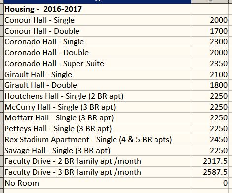 2016-2017 ASU Housing Rates